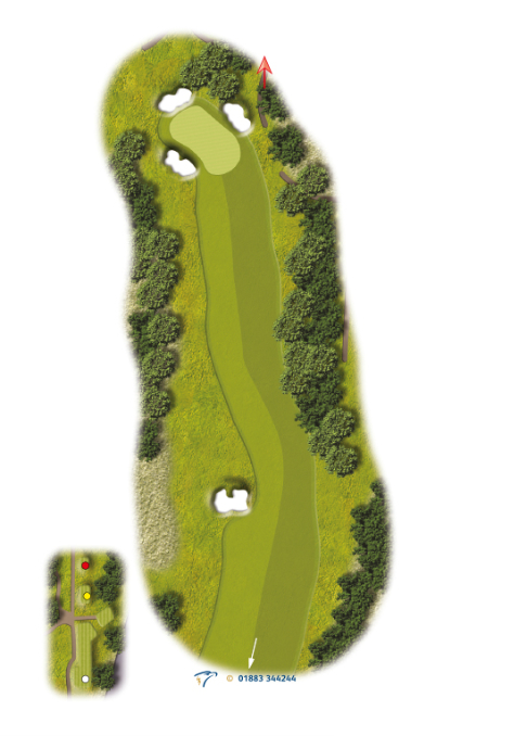 Another good Par 4 on the back nine, a well-positioned deep fairway bunker guards the left hand side, with the fairway gathering down towards the bunker. A tee shot up the right may leave you a longer shot into the green, but will ensure you avoid the trouble from the tee. You should look to run your second shot into this green as everything feeds toward centre.